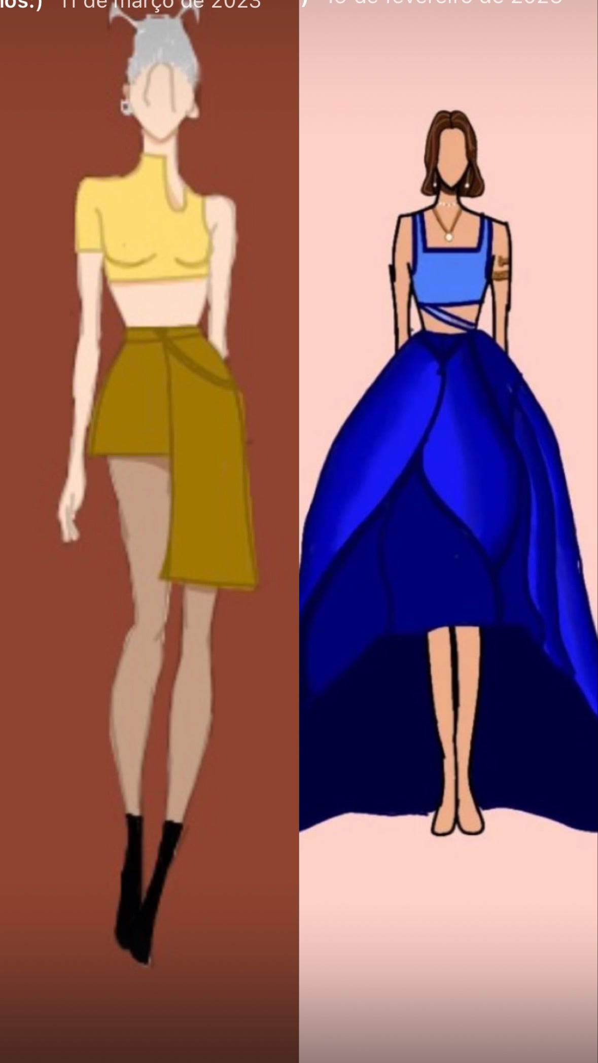 Mas já tive muitas versões com sonhos malucos, como quando eu quis cursar Cinema. Eu gravava vídeos de POV com personagens na pandemia, até que bastante gente assistia. Em outra época, eu quis fazer Moda, meus desenhos até que eram maneiros.
